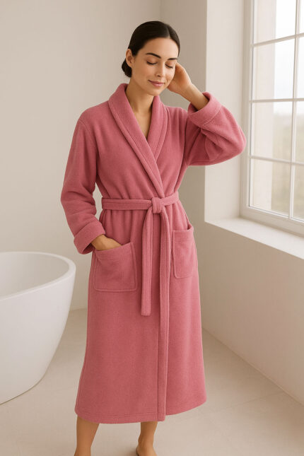 Designed with a relaxed fit, shawl collar, and a matching belt, this robe brings spa-level comfort to your everyday routine. Ideal for after-shower relaxation or lazy weekend mornings.”